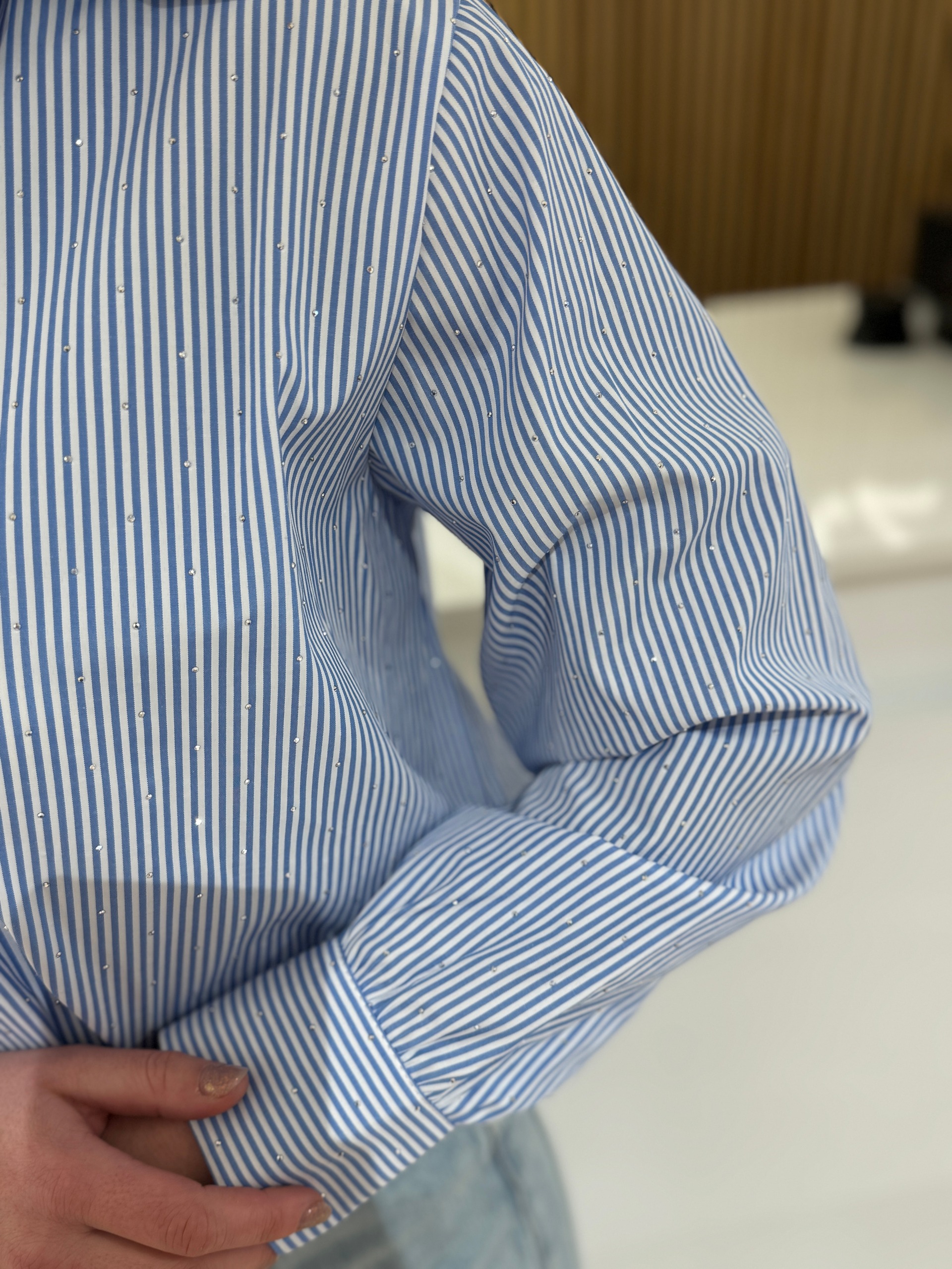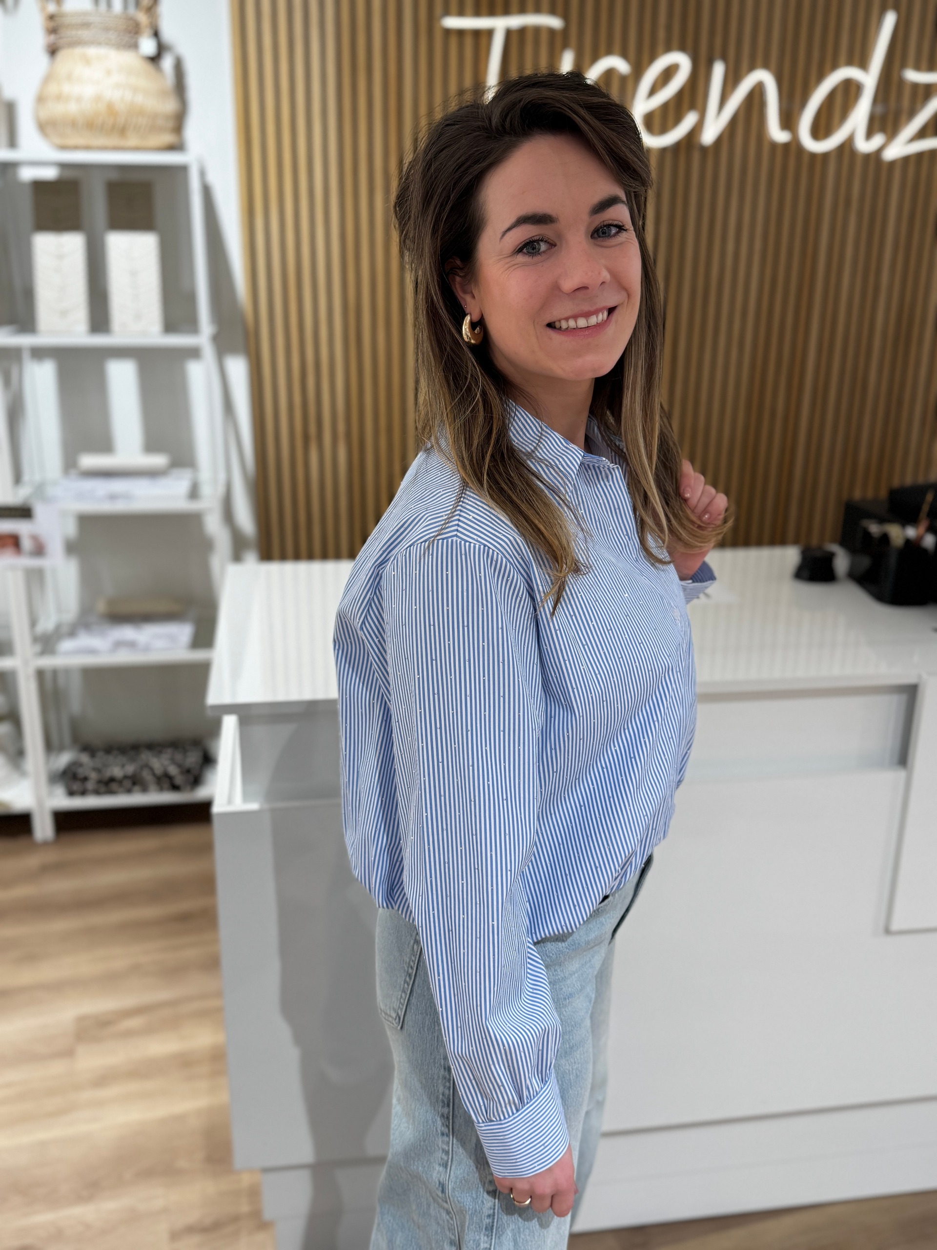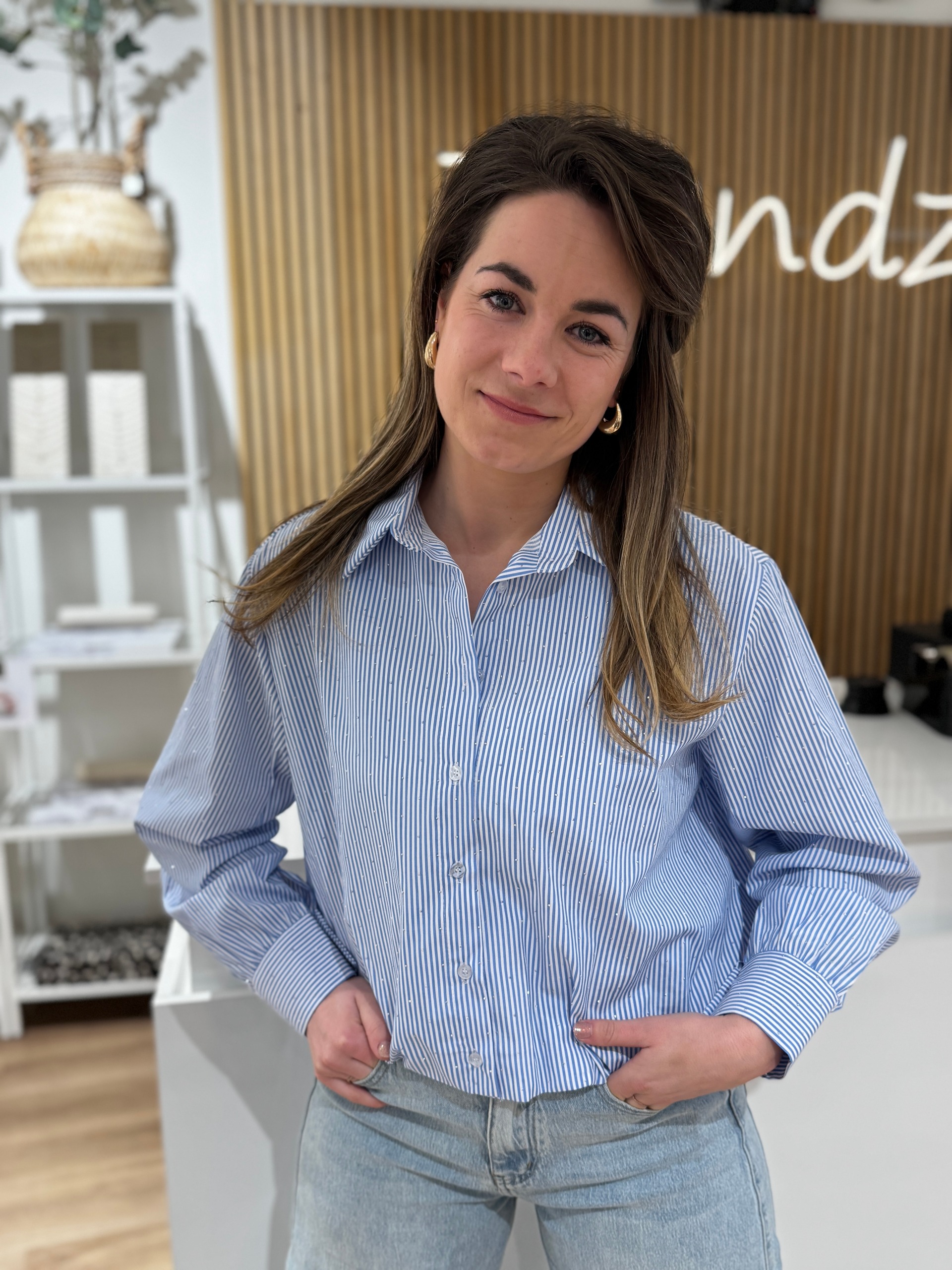 Blouse Julia blauw/wit diamant
