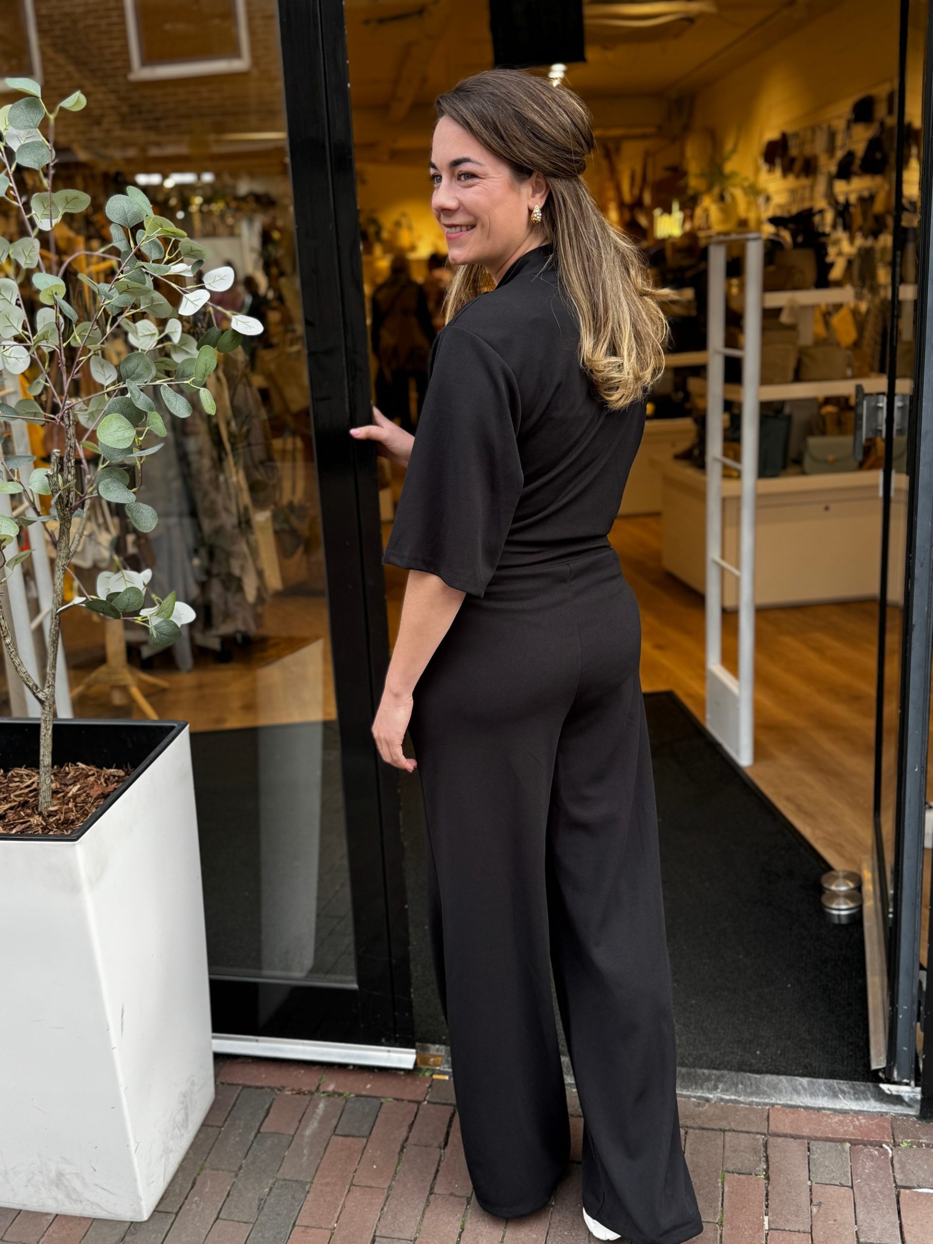 Jumpsuit Rosanne zwart korte mouw