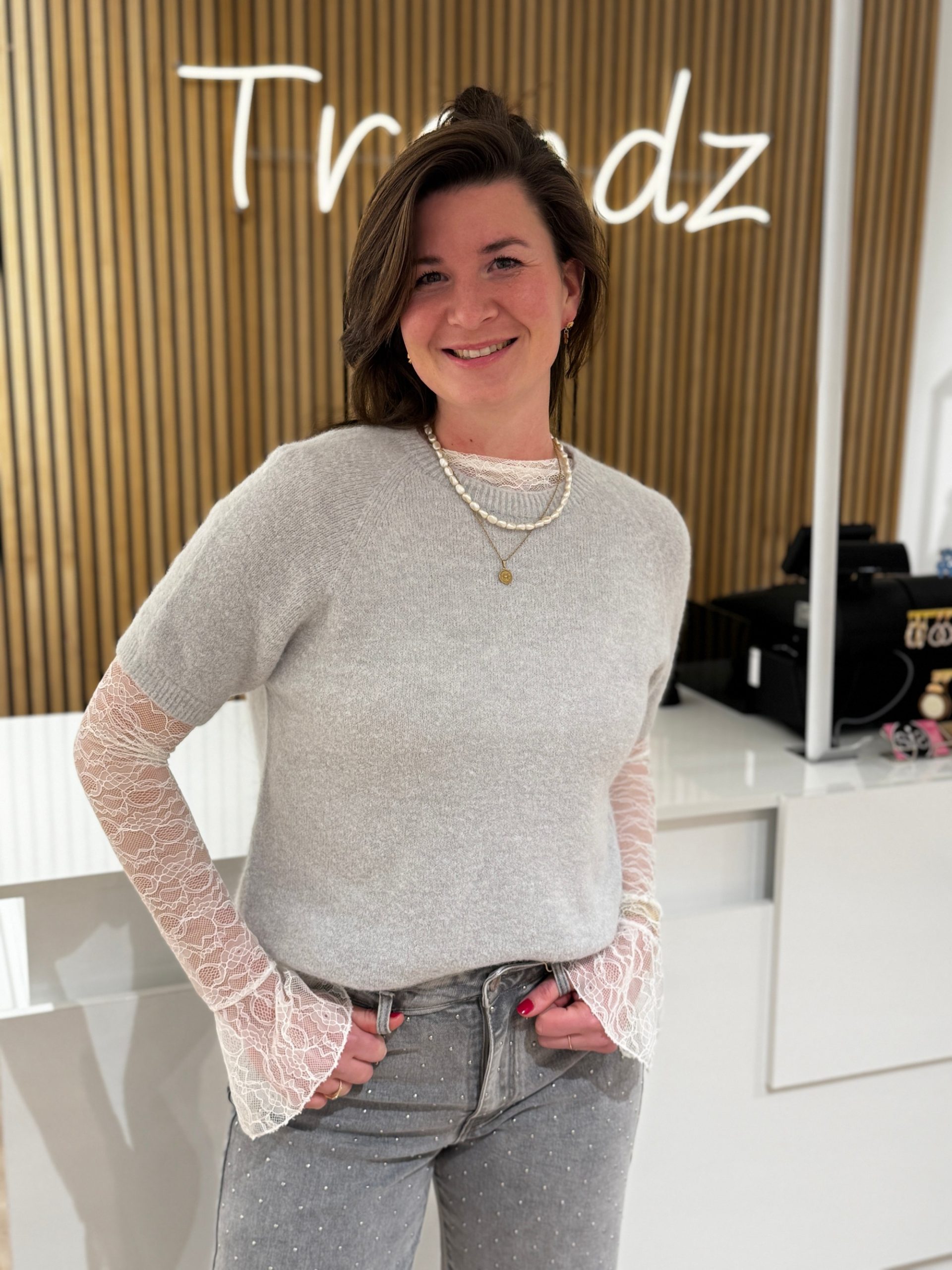 - Details: dit kantentopje heeft geen onderhemdje, combineer de top met een gilet of blazer en je hebt een leuk setje