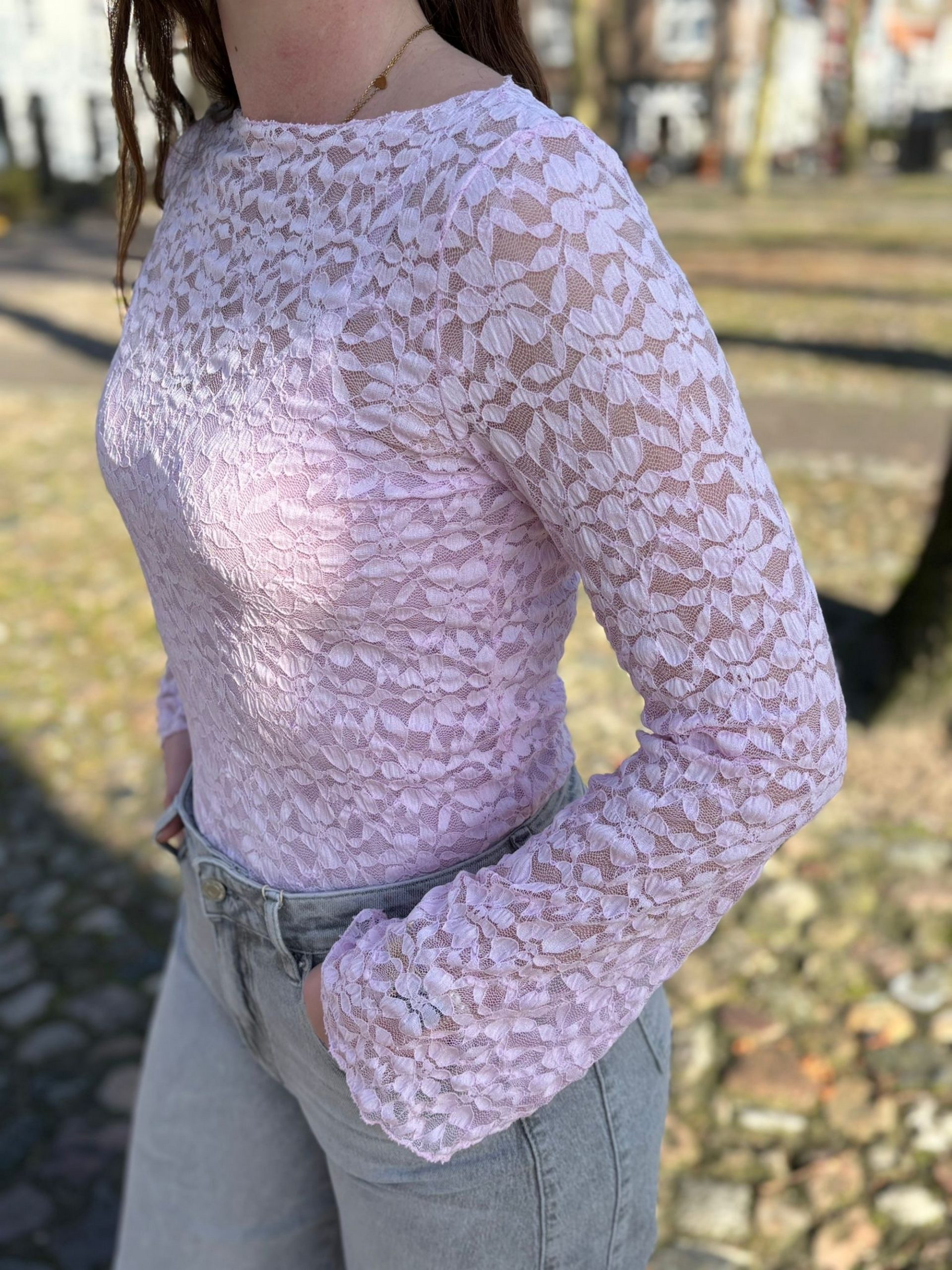 Kanten top Nina roze