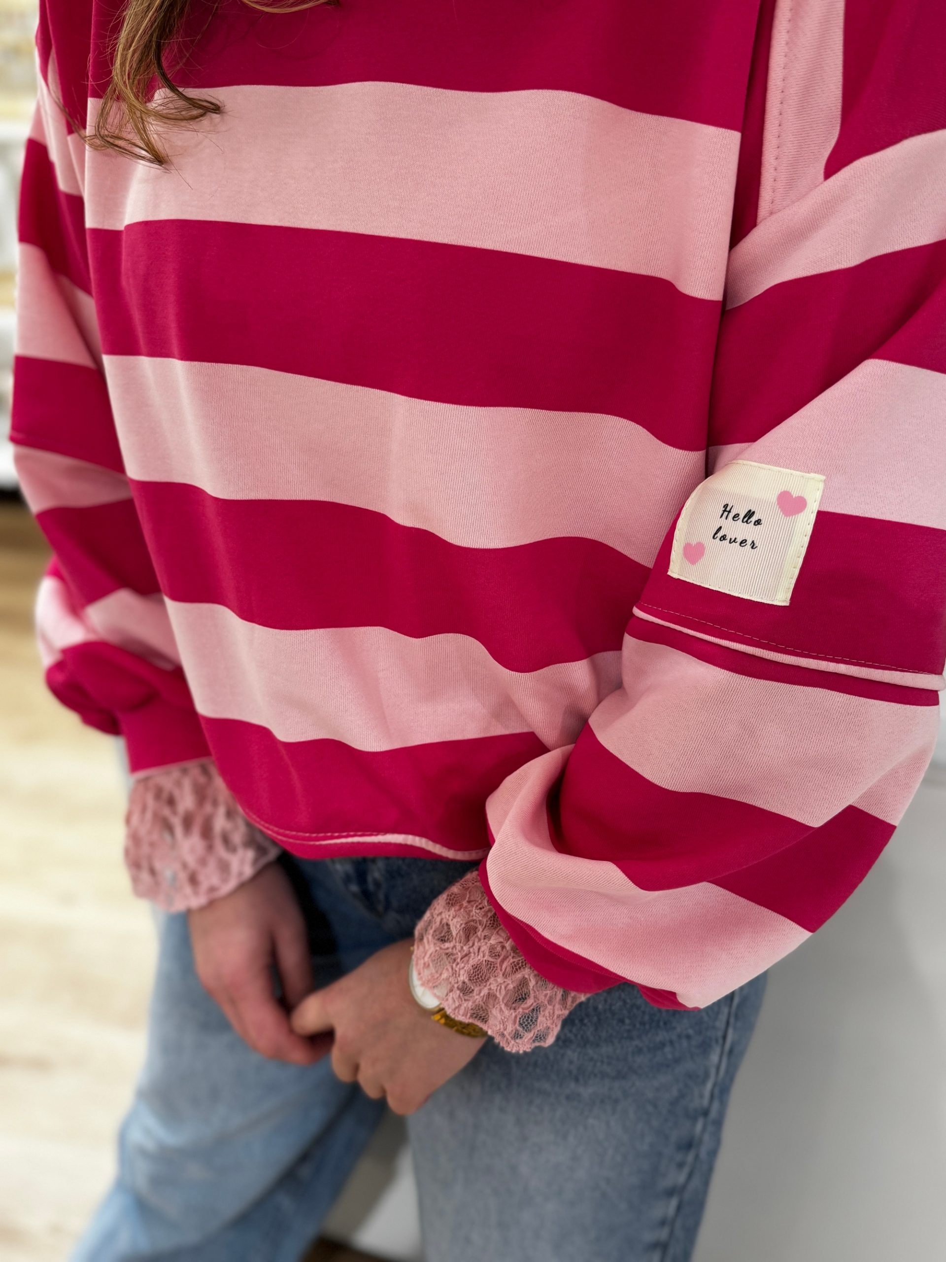 • Leuke applicatie op de mouw 'hello lover'