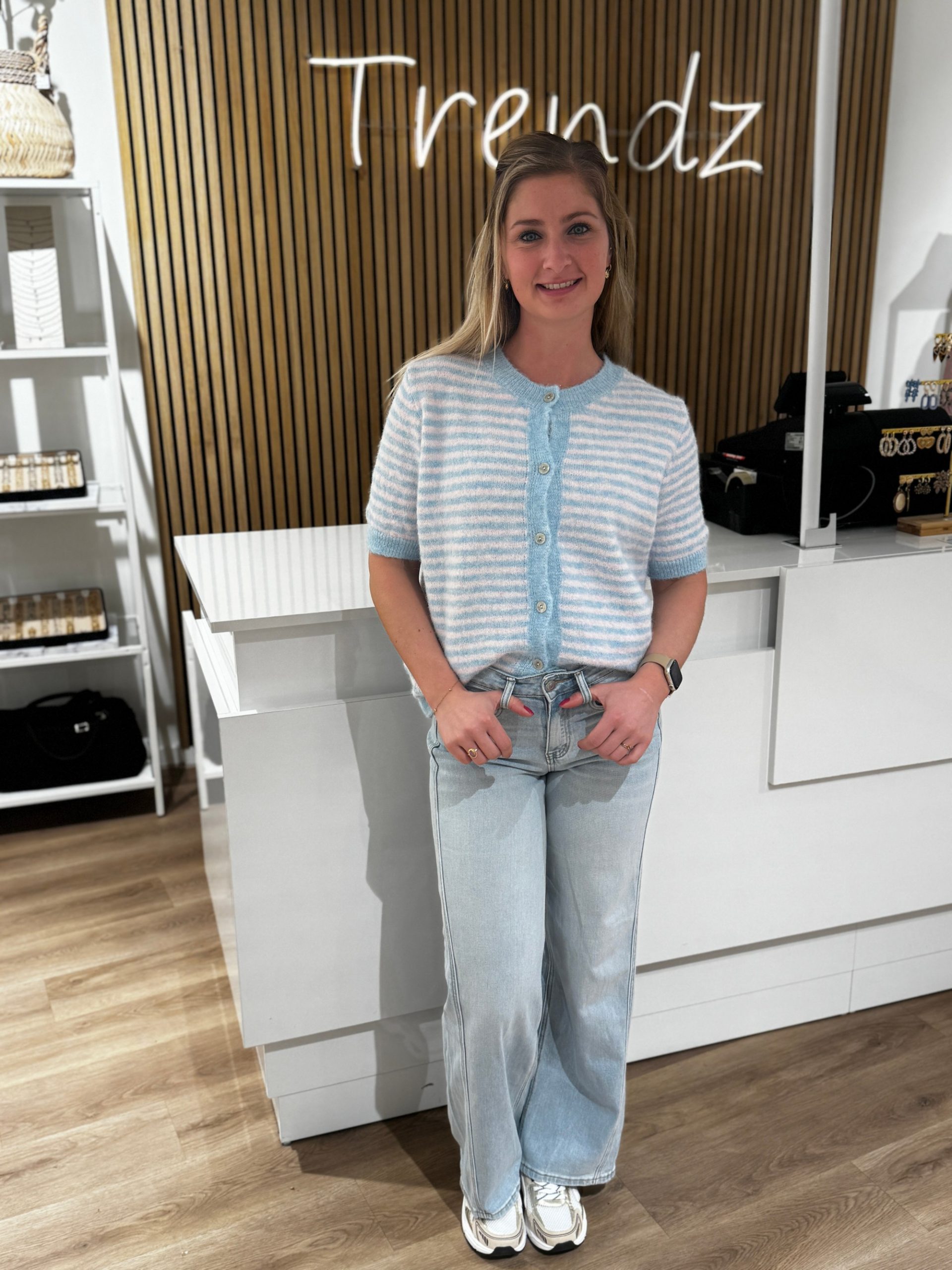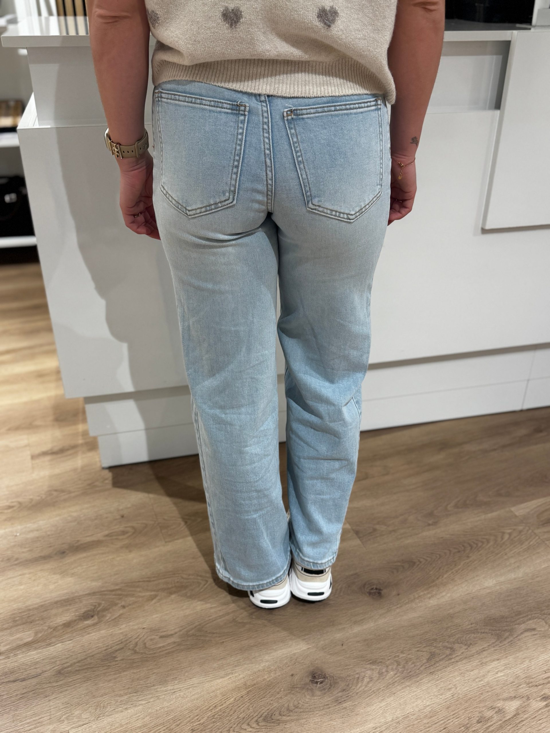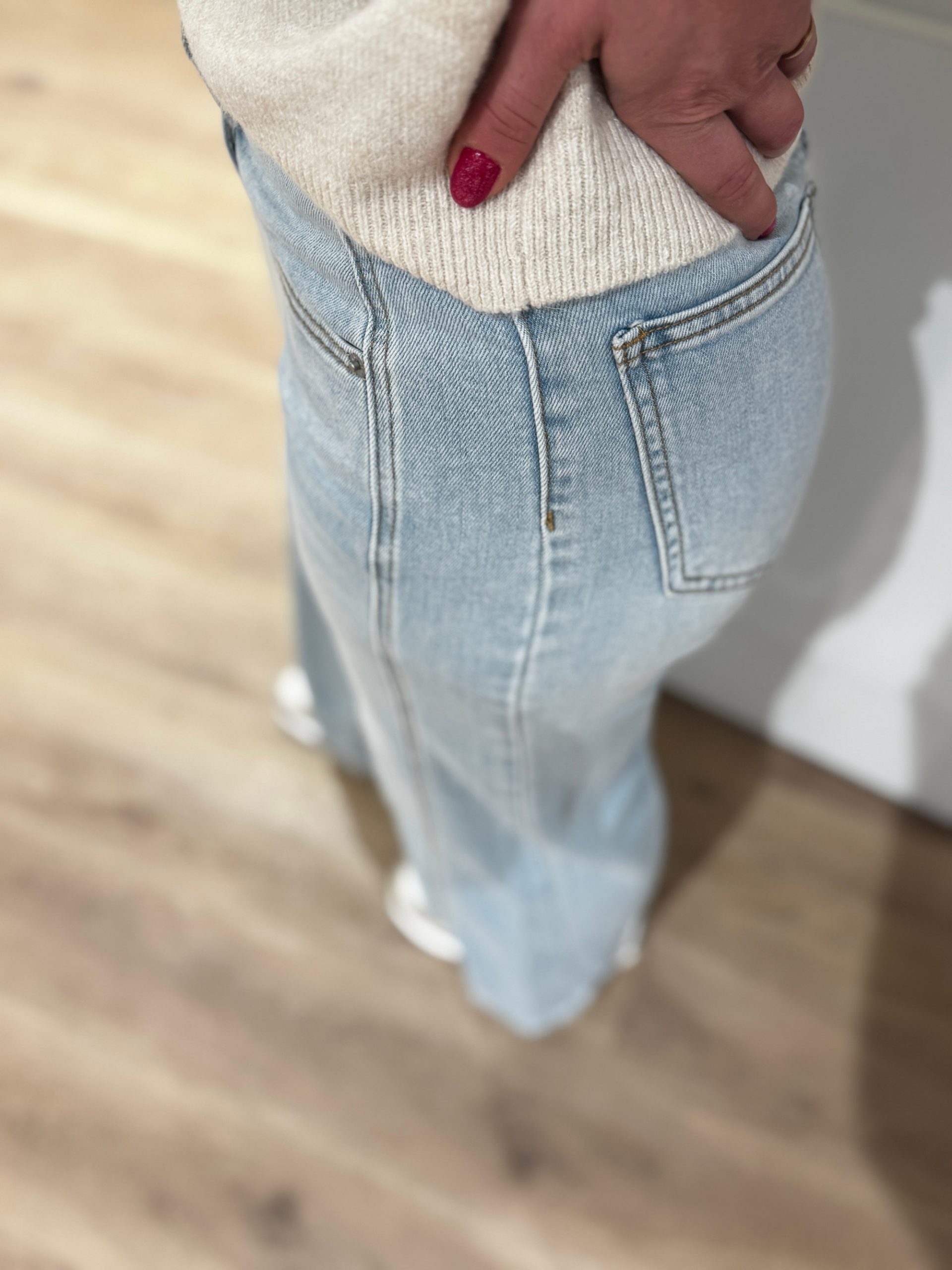 - Rebecca draagt maat S van deze fijne wide leg