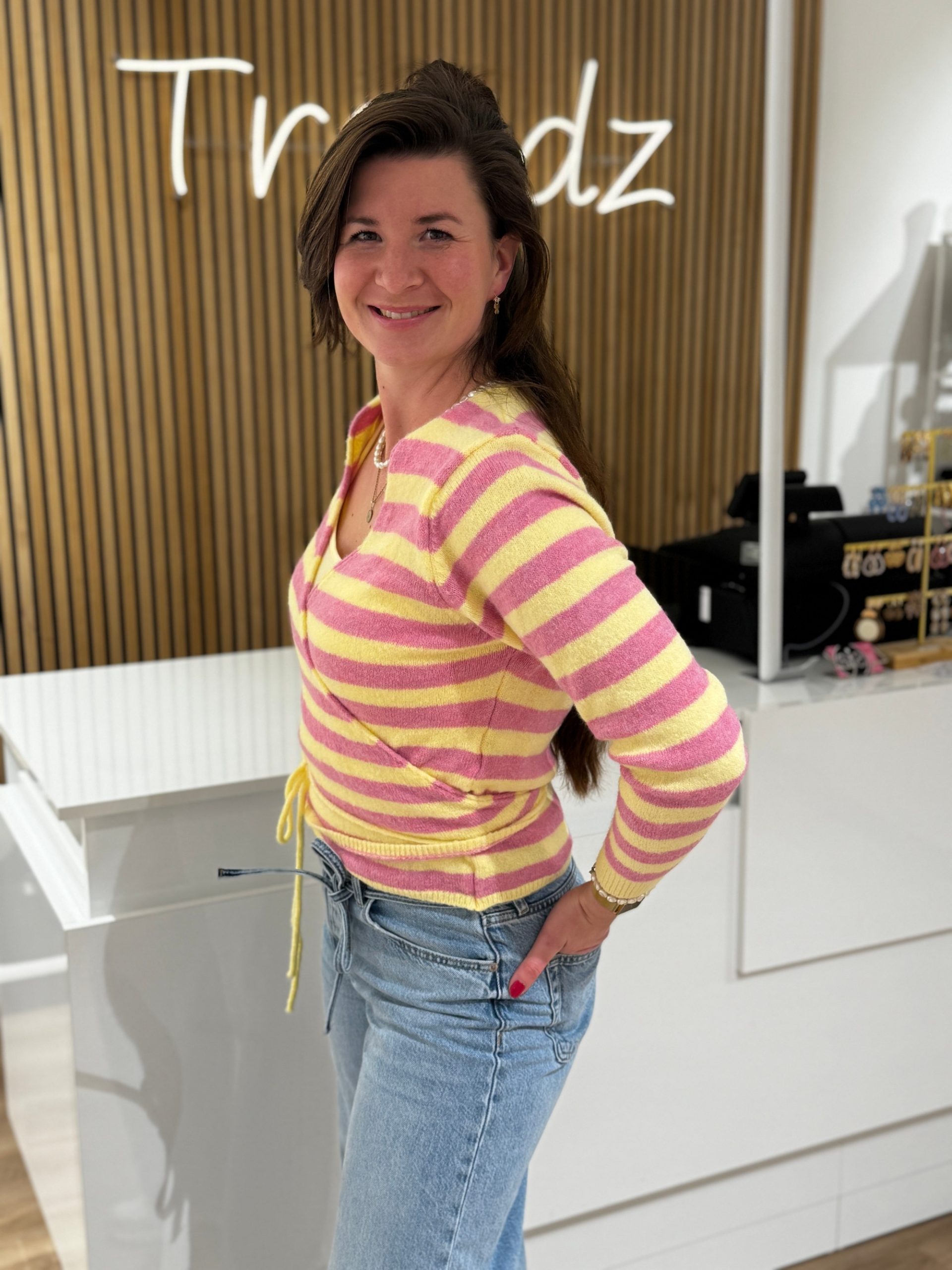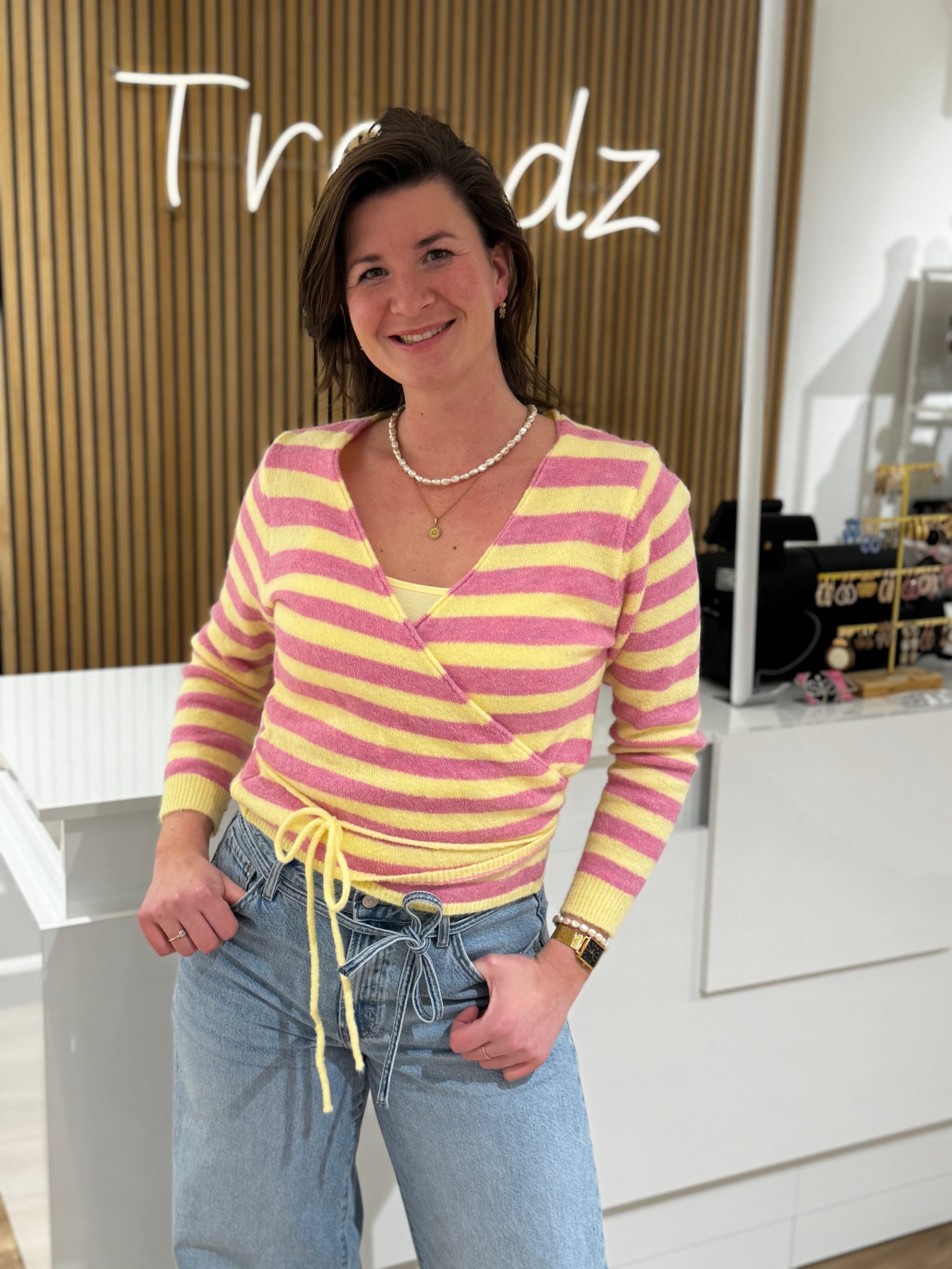 Wikkelvestje Liva geel/roze
