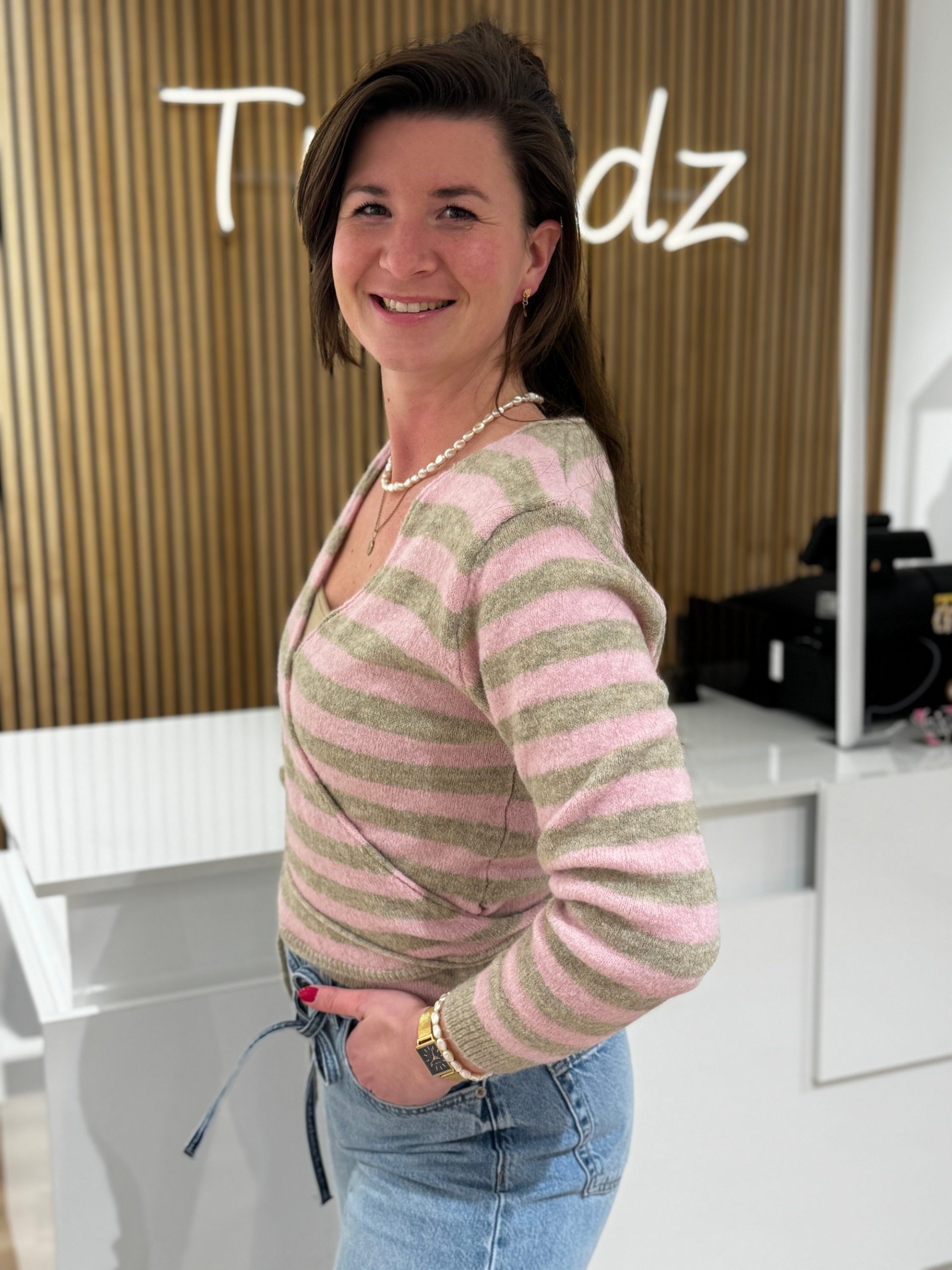 Wikkelvestje Liva taupe/roze